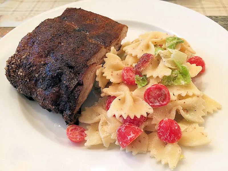 Dry the ribs off and peel membrane off the back if necessary. Rub down with the dry rub mixture on both sides, rubbing it in thoroughly. In Jessica's recipe she said you could prepare it the day before but the flavor was still there even if there wasn't any marinating time. That's true as I didn't do this and it was very flavorful.
