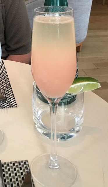 After discussing who was going to order a cocktail, Gregg said I should have one as he was driving. We went back and forth and I told him he should have a cocktail and I could drive, that it was after all Father's Day but he said no, to go ahead and order what I wanted, he was adamant. Knowing his mind was made up I asked for a Bellini. It was a drink I had never had before and was curious. I was not dissappointed as it was refreshing and delicious.