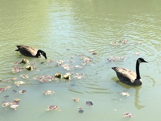 There was a Canada Goose family in the pond, along with four young mallards.
