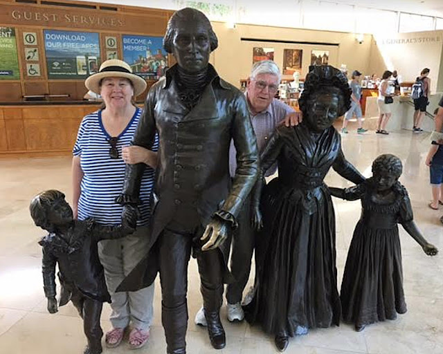 There had been a condensed movie on Washington's military and political life near the museum, which also showed how he had met Martha. Gregg took a photo of us with George, Martha and their grandchildren. These are statues that show their actual height.