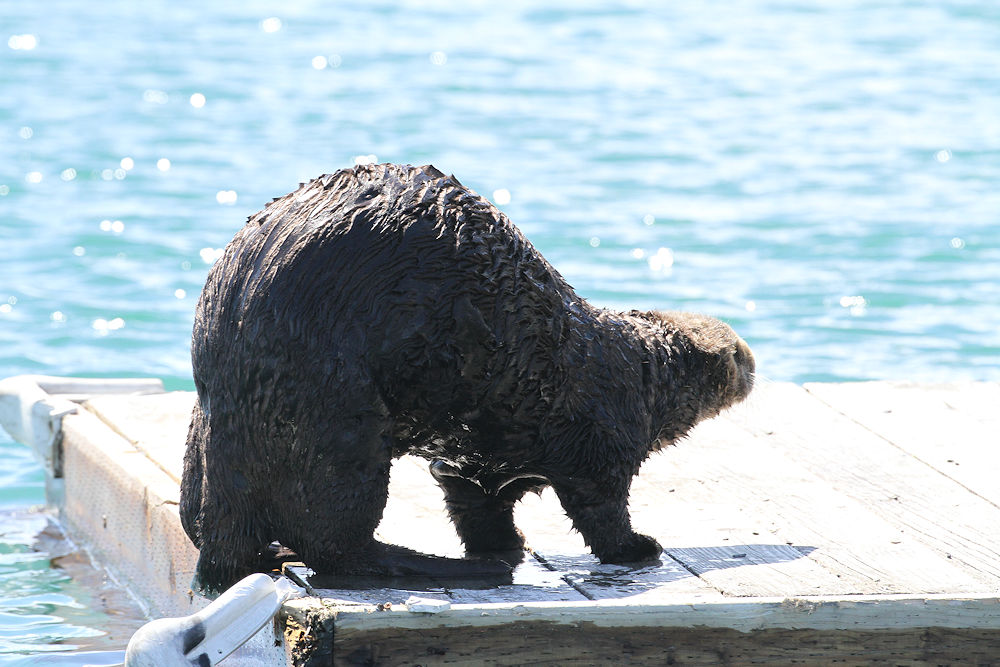 One pulled itself out of the water to sniff around the edge of one of the docks...