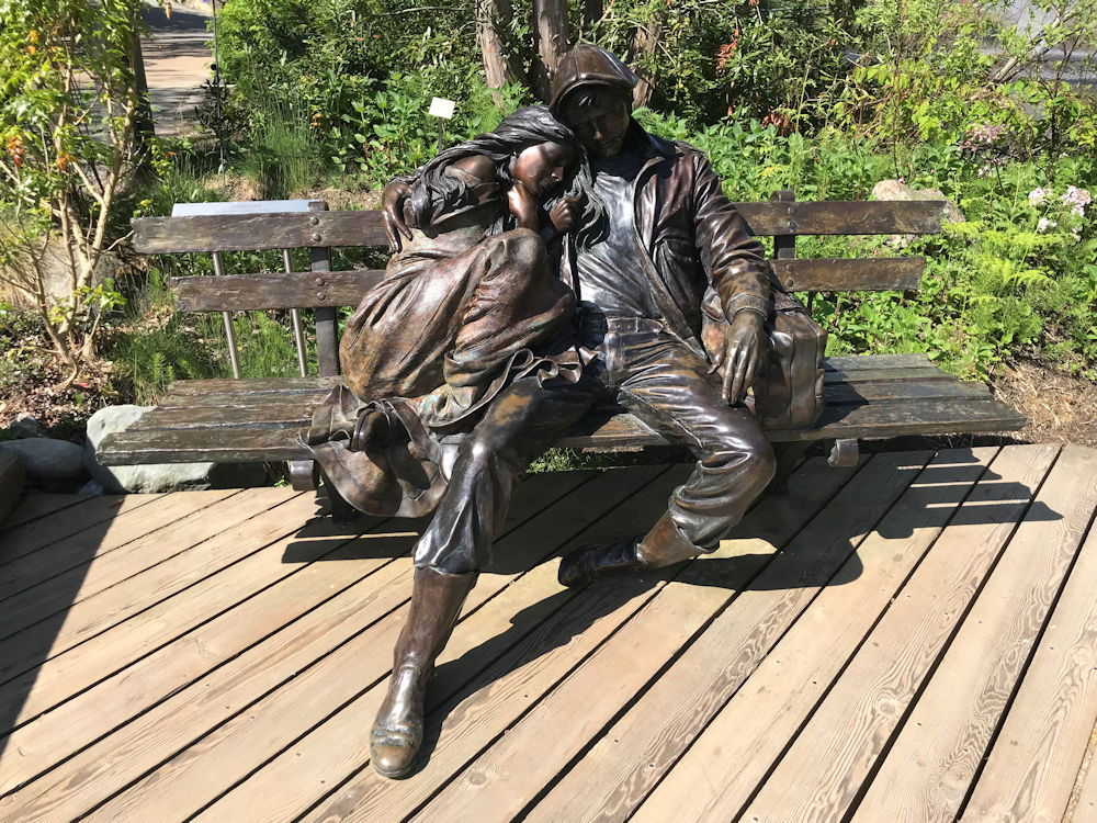 There was a statue I was very curious about when we first entered the garden, of a couple who seemed to be sleeping on a bench. It's title was “Departure”, a life size bronze sculpture by the American artist, George Lundeen.