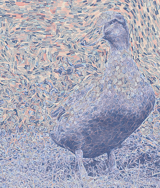 with one of my art apps on my iPad, I used a couple of the goose and duck photos from yesterday's post which can be seen here if you want to compare.  While Gregg watched his baseball game, I played on the computer.  It is fun coming up with the different effects.  The app I used was Brushstrokes.