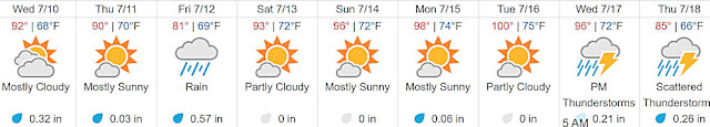 Below I have added our forecast from July 10th to the 18th. We won't be going on any long walks for a while. I understand people have it much hotter than us, so please stay safe and cool.