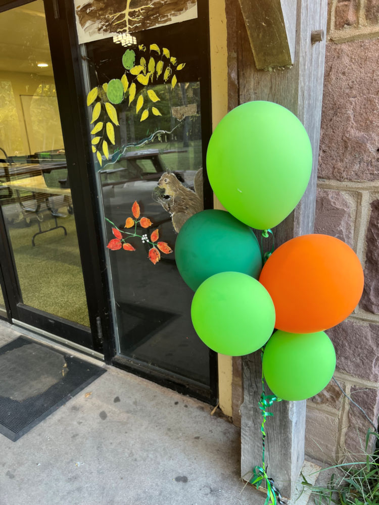 Saturday, 10-19-24: In the late afternoon we went to our nearest park for a short walk. The tree above was taken on our way and it is one of the prettiest I've seen. A lot of the trees don't seem to have too many reds in them this year. The park was busy as there was a reservation sign for a children's birthday party and young guests had already started arriving. I took several photos and will share them soon. Many of the windows at the visitor center have these drawings on them. It's a great way to protect the birds.